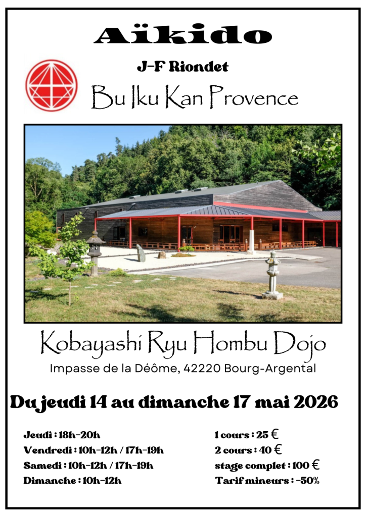 Stage de Jean-François Riondet du 9 au 12 mai à Bourg-Argental.